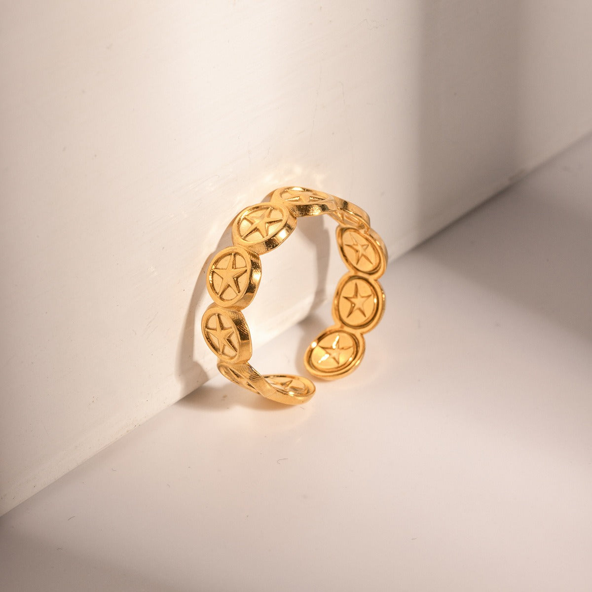 Stainless steel five pointed star open ring, hand decoration for women